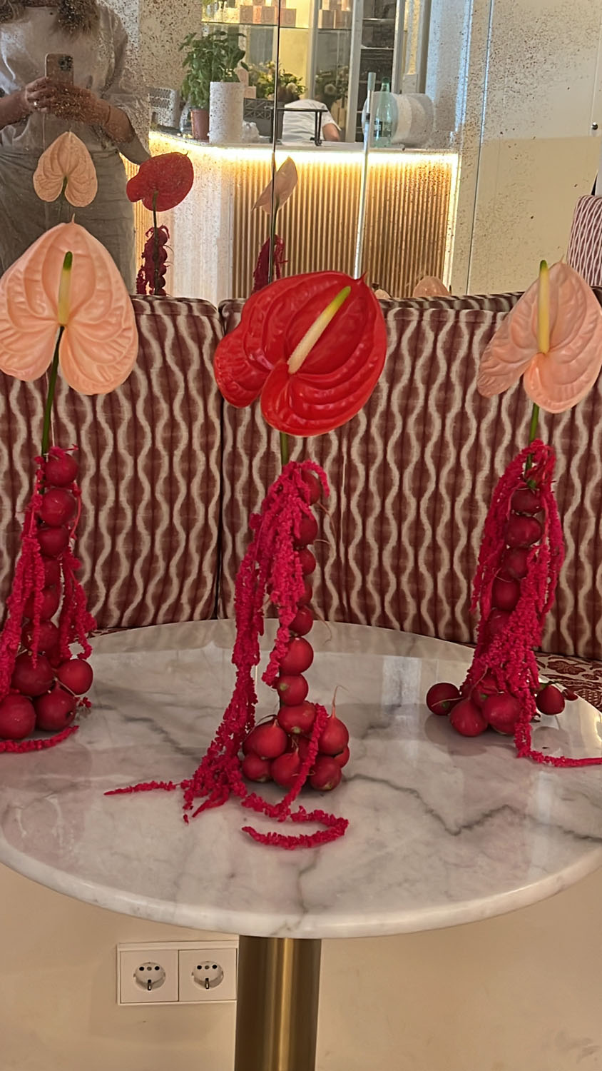 Dirección creativa, producción y food styling de las diferentes estaciones del evento “Pink Summer” del catering Delirium.